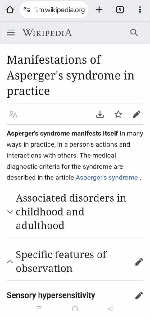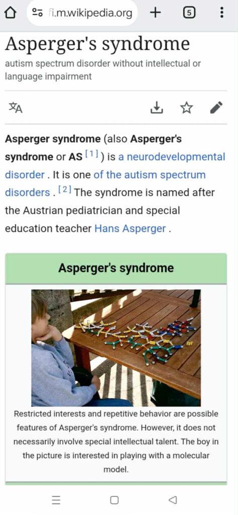 Wikipedia: Manifestations of Asperger’s Syndrome in Practice.